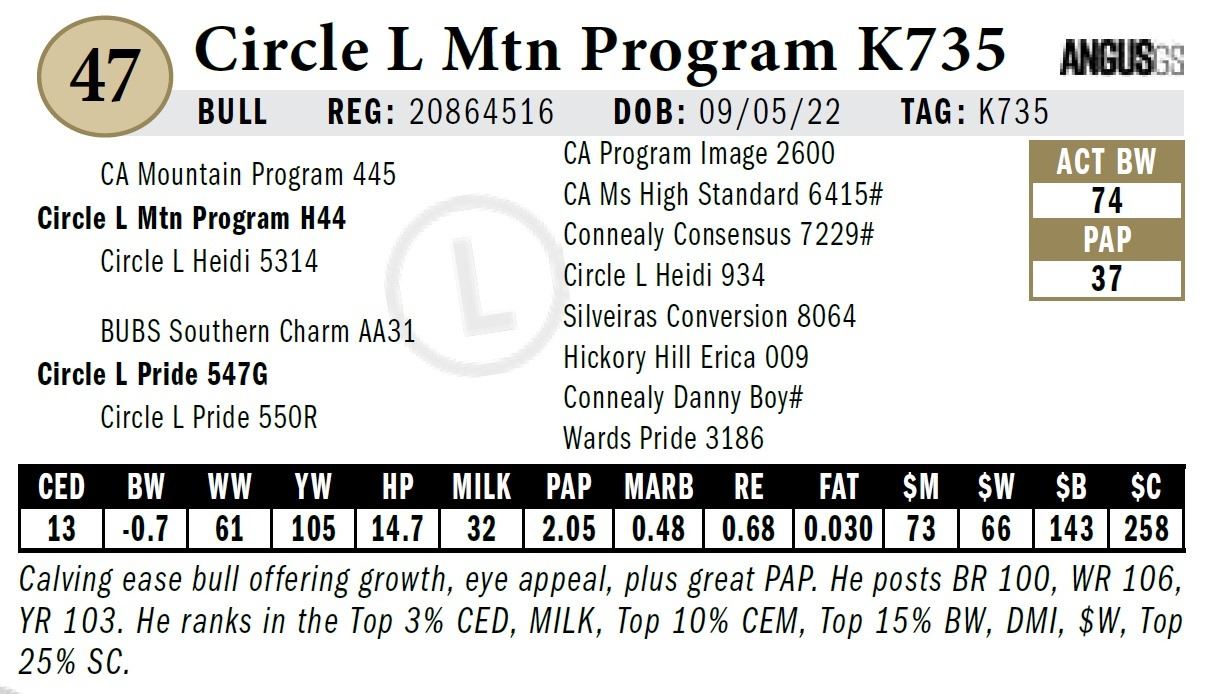 All persons who attend this sale do so at their own risk, legal or otherwise. Circle L Angus assumes no liability for property loss or accident that may occur.