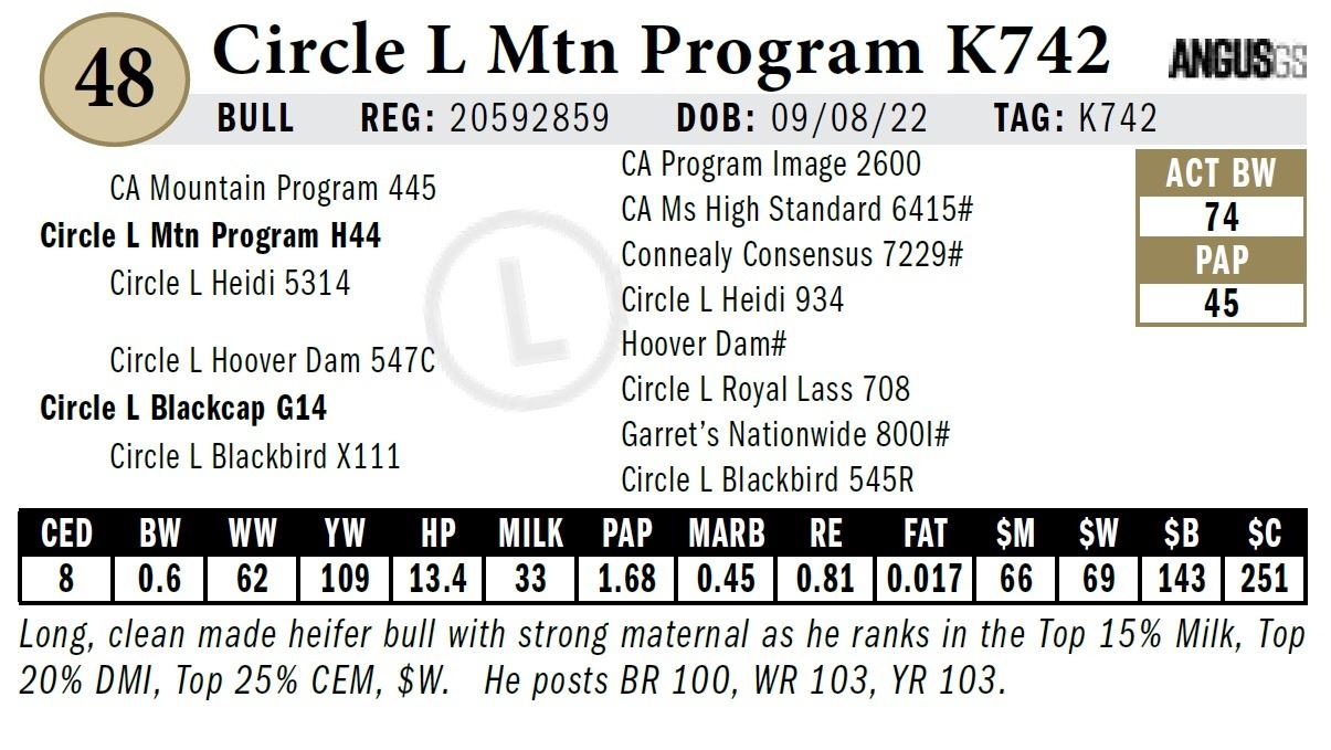 All persons who attend this sale do so at their own risk, legal or otherwise. Circle L Angus assumes no liability for property loss or accident that may occur.
