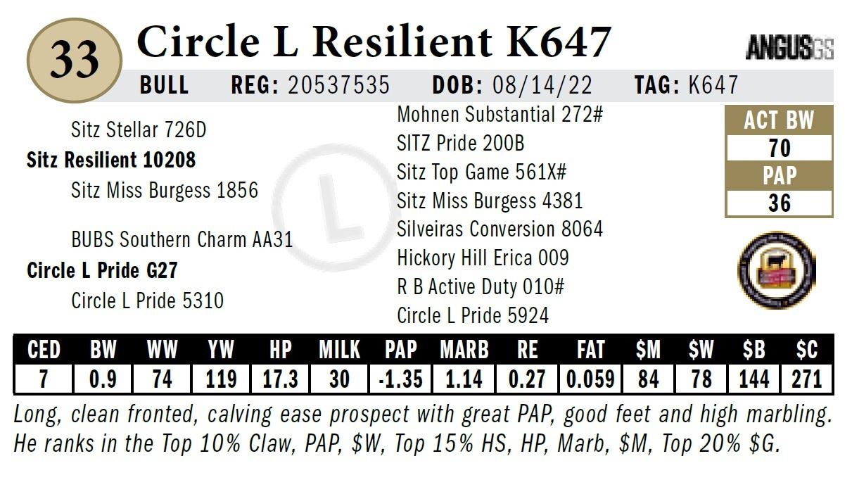 All persons who attend this sale do so at their own risk, legal or otherwise. Circle L Angus assumes no liability for property loss or accident that may occur.
