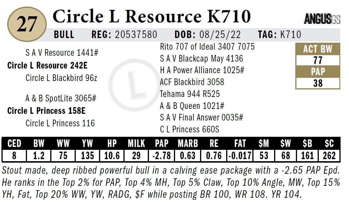 All persons who attend this sale do so at their own risk, legal or otherwise. Circle L Angus assumes no liability for property loss or accident that may occur.