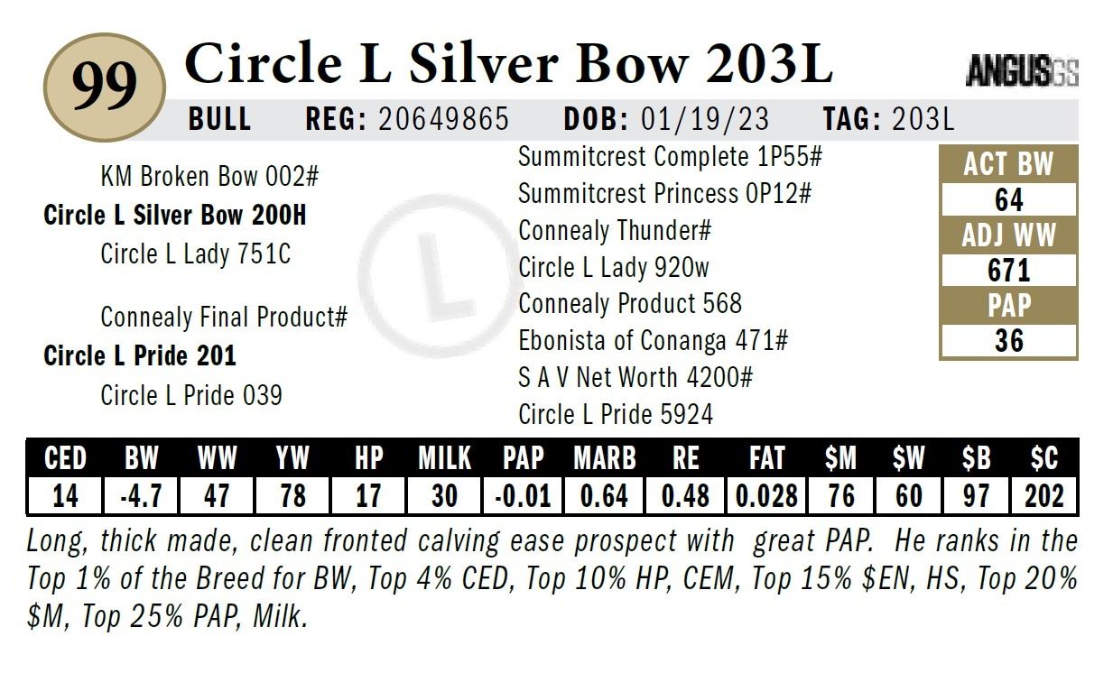 All persons who attend this sale do so at their own risk, legal or otherwise. Circle L Angus assumes no liability for property loss or accident that may occur.