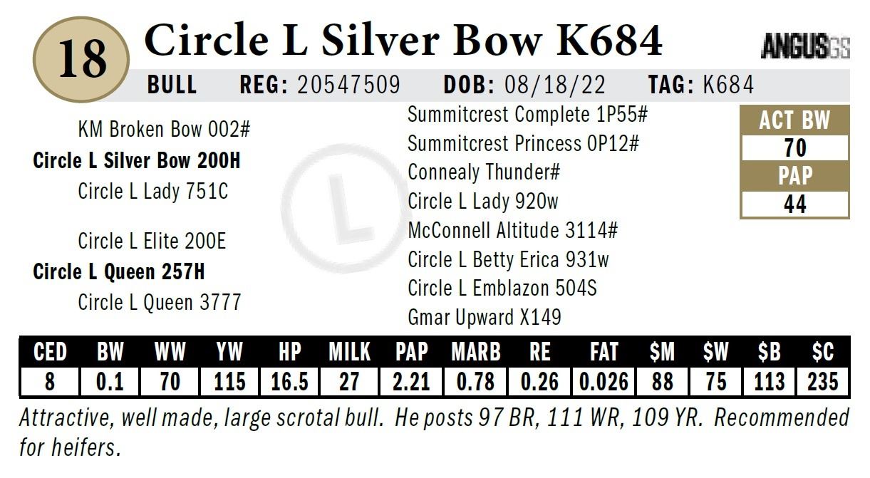 All persons who attend this sale do so at their own risk, legal or otherwise. Circle L Angus assumes no liability for property loss or accident that may occur.