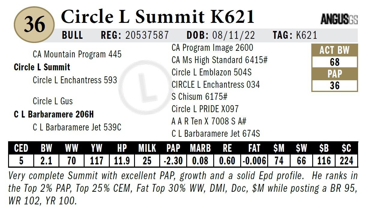 All persons who attend this sale do so at their own risk, legal or otherwise. Circle L Angus assumes no liability for property loss or accident that may occur.