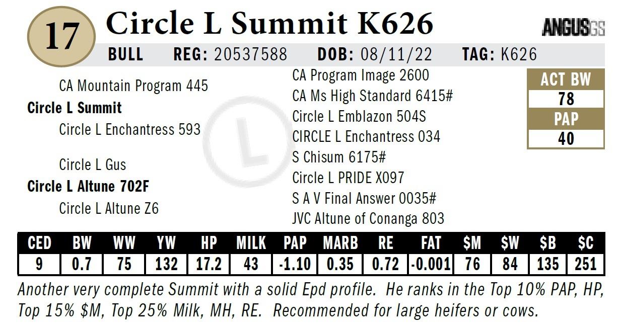 All persons who attend this sale do so at their own risk, legal or otherwise. Circle L Angus assumes no liability for property loss or accident that may occur.