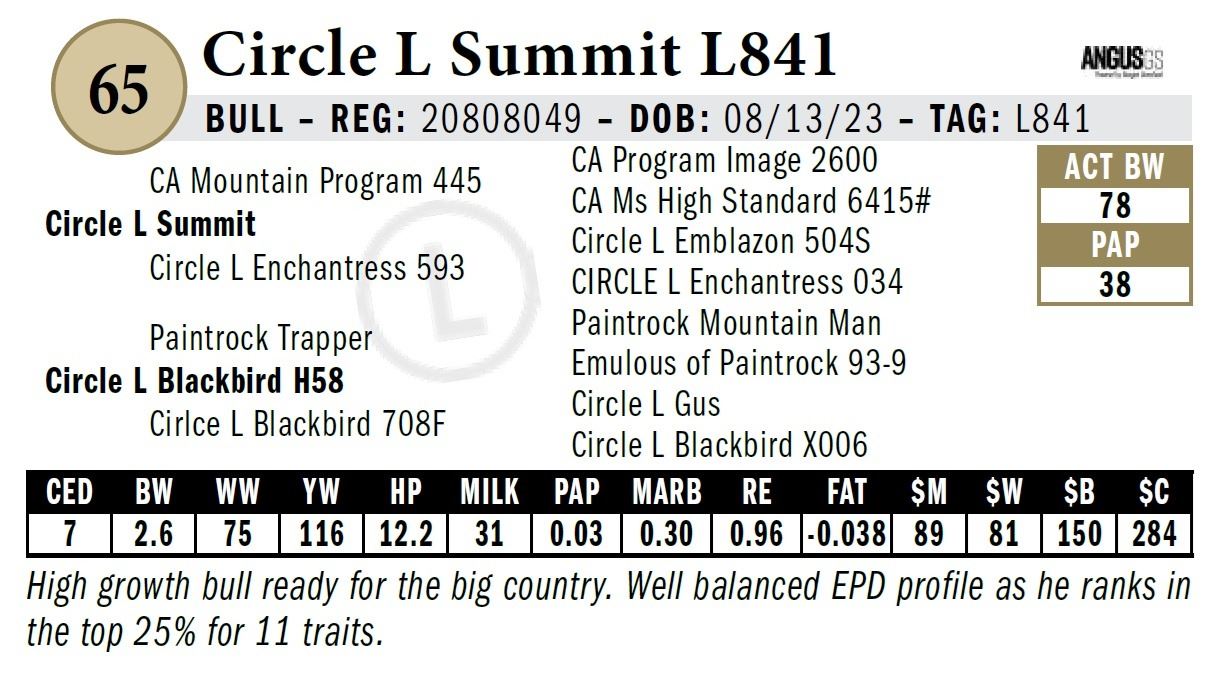 All persons who attend this sale do so at their own risk, legal or otherwise. Circle L Angus assumes no liability for property loss or accident that may occur.