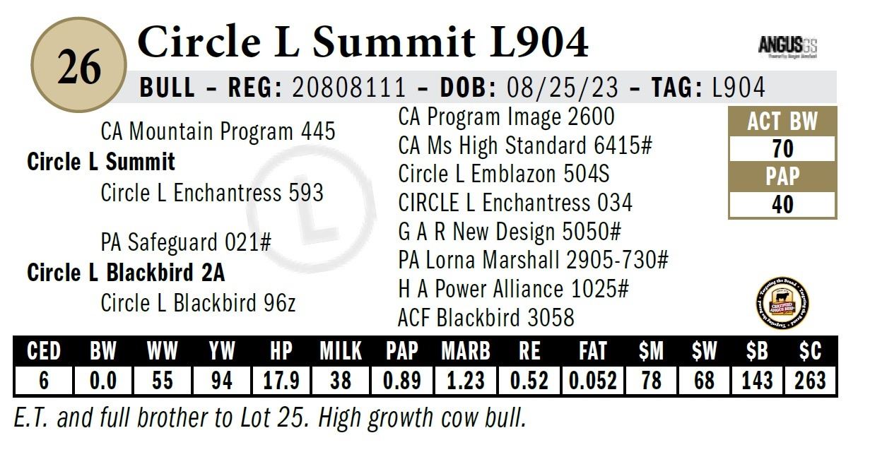 All persons who attend this sale do so at their own risk, legal or otherwise. Circle L Angus assumes no liability for property loss or accident that may occur.