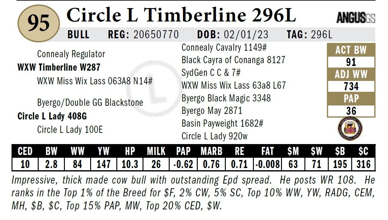 All persons who attend this sale do so at their own risk, legal or otherwise. Circle L Angus assumes no liability for property loss or accident that may occur.