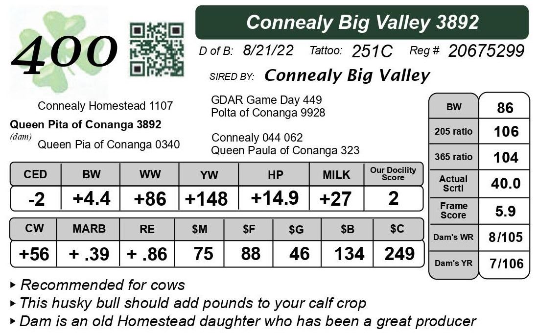 All bulls are guaranteed against injury or death through the first breeding season. If a replacement bull is not available when needed, credit will be issued for the next year’s sale.
