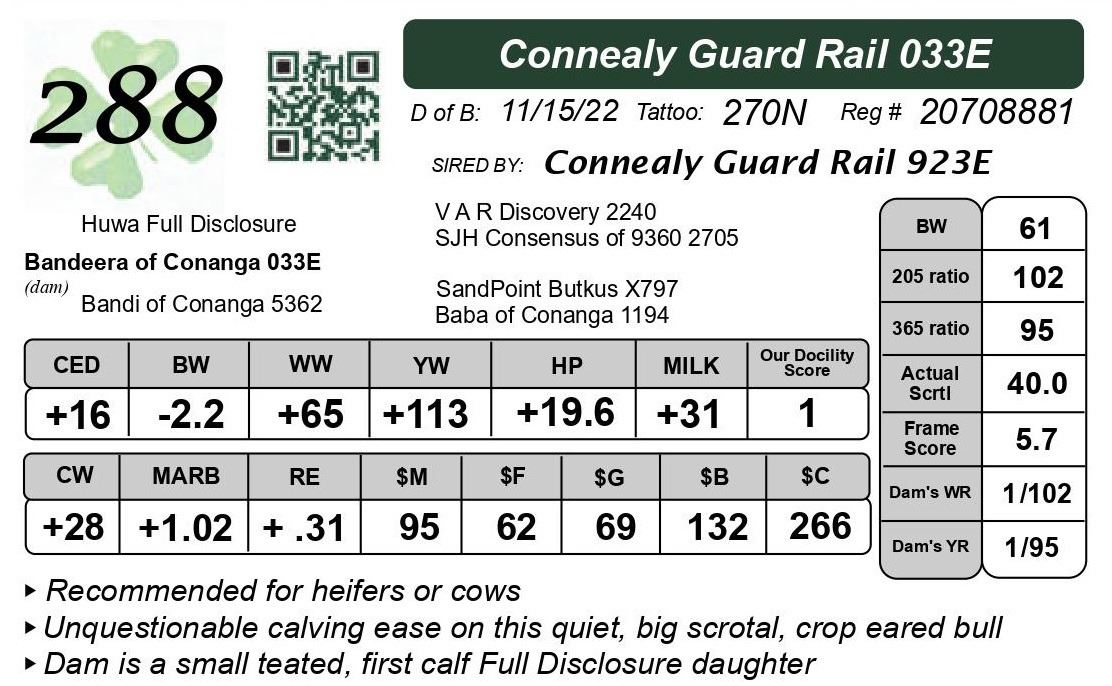 All bulls are guaranteed against injury or death through the first breeding season. If a replacement bull is not available when needed, credit will be issued for the next year’s sale.