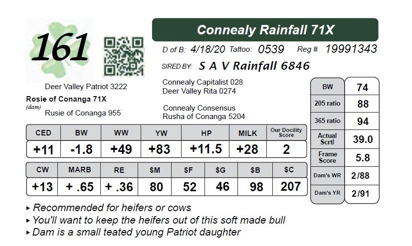 All bulls are guaranteed against injury or death through the first breeding season. If a replacement bull is not available when needed, credit will be issued for the next year’s sale.