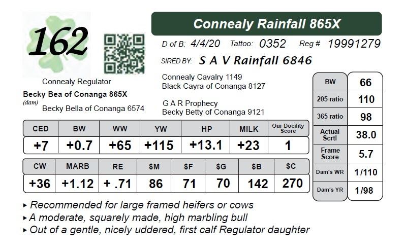 All bulls are guaranteed against injury or death through the first breeding season. If a replacement bull is not available when needed, credit will be issued for the next year’s sale.