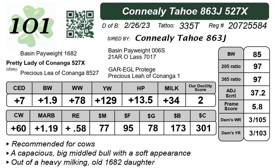 All bulls are guaranteed against injury or death through the first breeding season. If a replacement bull is not available when needed, credit will be issued for the next year’s sale.
