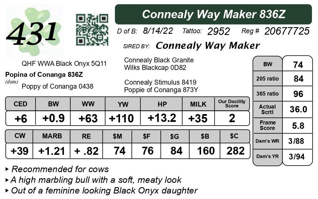 All bulls are guaranteed against injury or death through the first breeding season. If a replacement bull is not available when needed, credit will be issued for the next year’s sale.