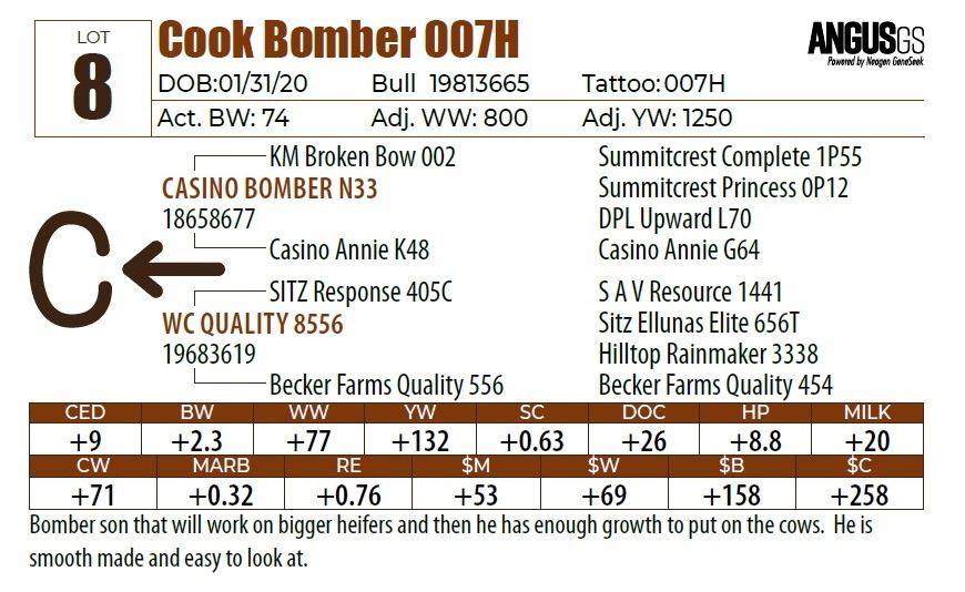 Bomber son that will work on bigger heifers and then he has enough growth to put on the cows. He is