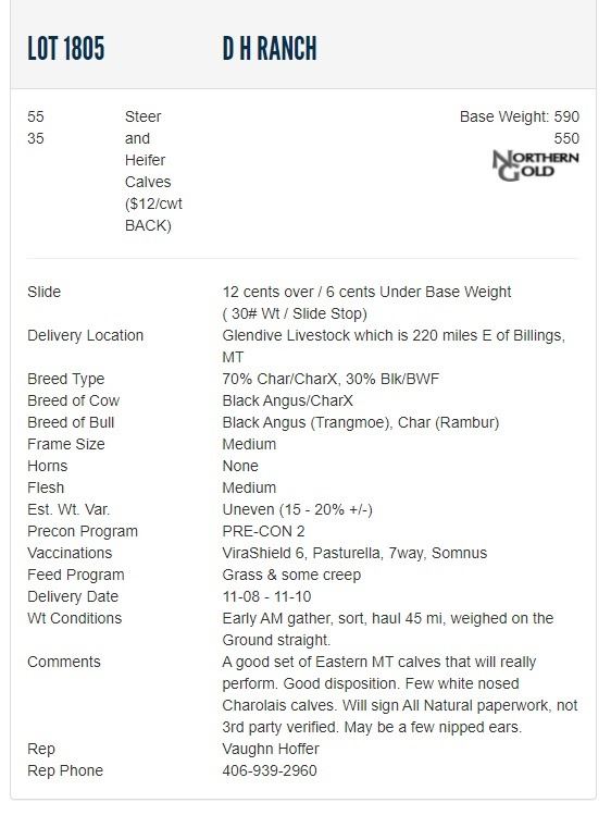 Comments A good set of Eastern MT calves that will really perform. Good disposition. Few white nosed Charolais calves. Will sign All Natural paperwork, not 3rd party verified. May be a few nipped ears.