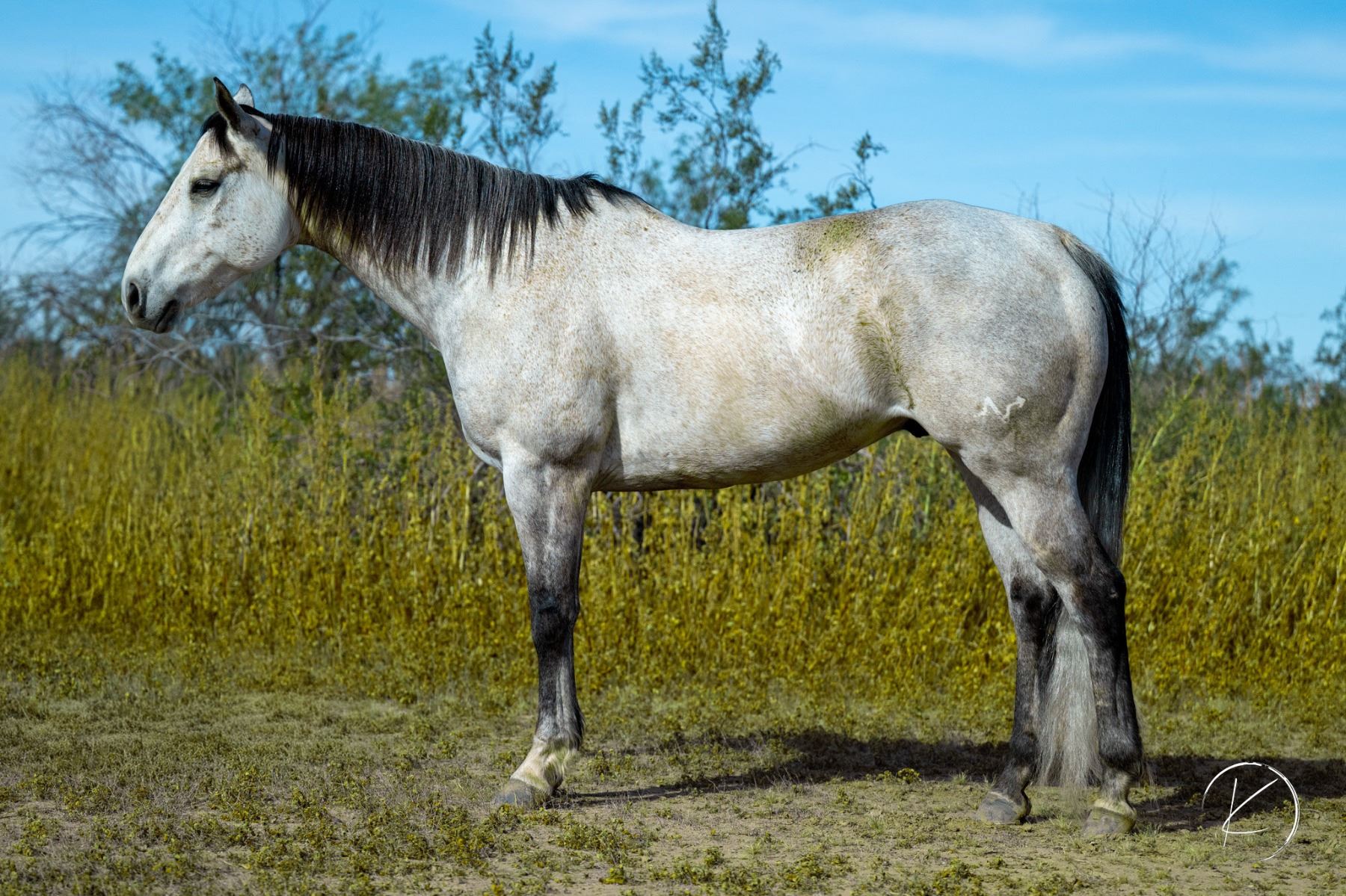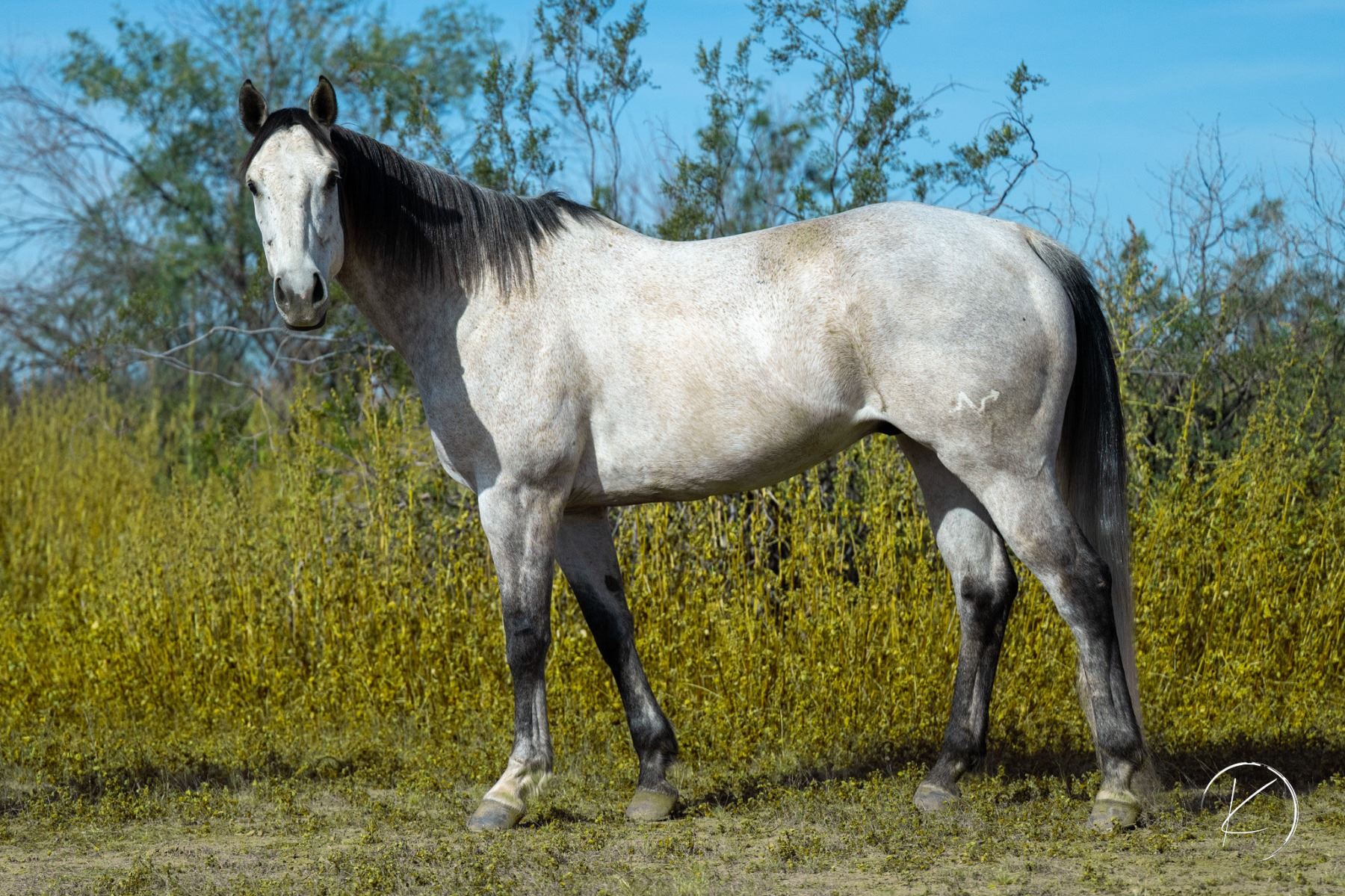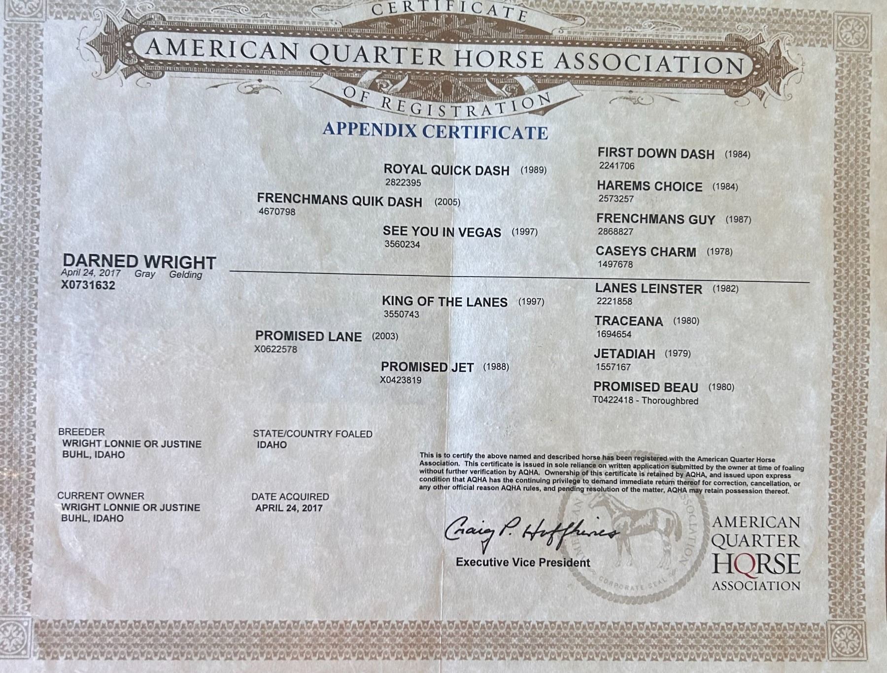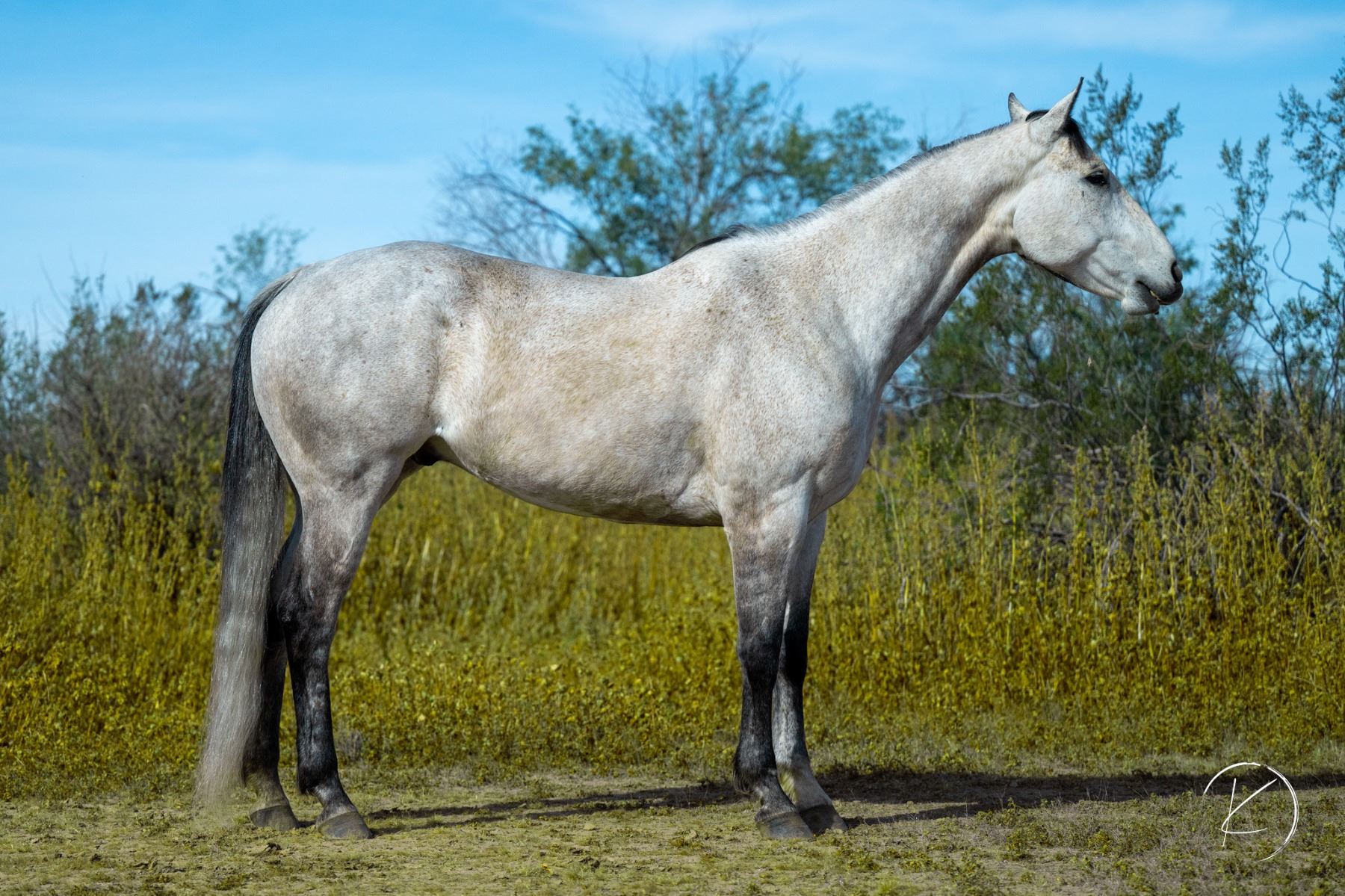 2017 AQHA Gray Gelding x Frenchmans Quik Dash x Royal Quick Dash out of Promised Lane x King Of The Lanes. Barrel Racing, Heading & Ranch Gelding. He’s a big boy, standing at 16.1 hh. Nelson is a very friendly, in your pocket personality, this guy is the first to meet you at the gate. I took him to rodeos summer 2025 and he handled life on the road like a pro; eating, drinking and hauling well with others. He also handles a rodeo atmosphere well. At barrel races he stands up on all types of ground & handles various set ups well. Typically runs a mid 18 on a standard pattern (18.2 being his current fast time) and often lands in the 3D depending on race size. This winter he was primarily used as a practice head horse & just taken to barrel races occasionally. With no barrel work he would land anywhere from the 3D (out of 130+) to winning the 5D open at a NBHA Supershow (300+). He has also been lightly started on poles and has taken a real liking to them. Paid in full to the Royal Crown Lifetime Royalty. On the heading side he is still green, but ready to be hauled for money and finished out your way. Additionally, Nelson has been used on the ranch extensively and is a dream riding out on his own. Good crossing water, down timber and rough terrain. He’s sure footed riding out on the ranch and this transfers over to the arena. UTD on vaccines, worming and shoes. He had his hocks and stifles injected for the first time in August 2025 as maintenance. His only other maintenance is PEMF sessions. Has some cosmetic scars on his legs, we haven’t had any lameness issues in the 3 years of owning him. Can keep in Wittmann Arizona until April 22 at no additional cost. Willing to provide transportation from Wittmann AZ to Gunnison Colorado (or anywhere along the way) on April 23rd. Can help arrange transportation nationwide at buyers expense. LOCATION: Wittmann, AZ. VIDEO: https://youtu.be/BDEsEKWsJMc FMI: 406-570-2755