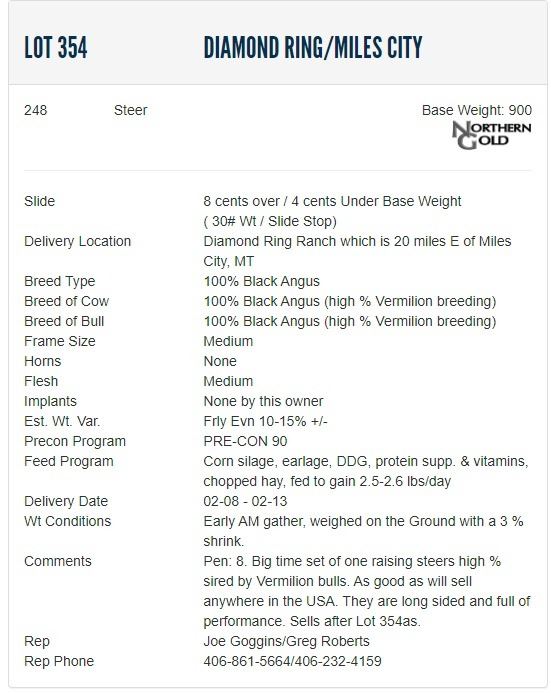 Diamond Ring/Miles City - 248 Steers (Base Weight: 900)