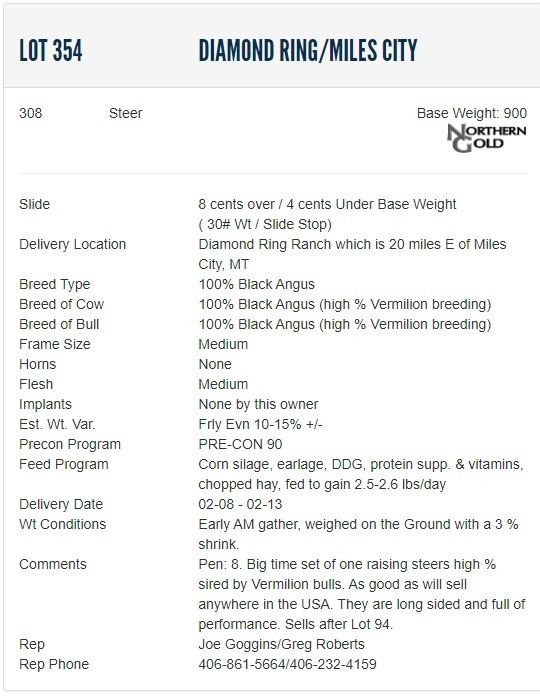 Diamond Ring/Miles City - 308 Steers (Base Weight: 900)