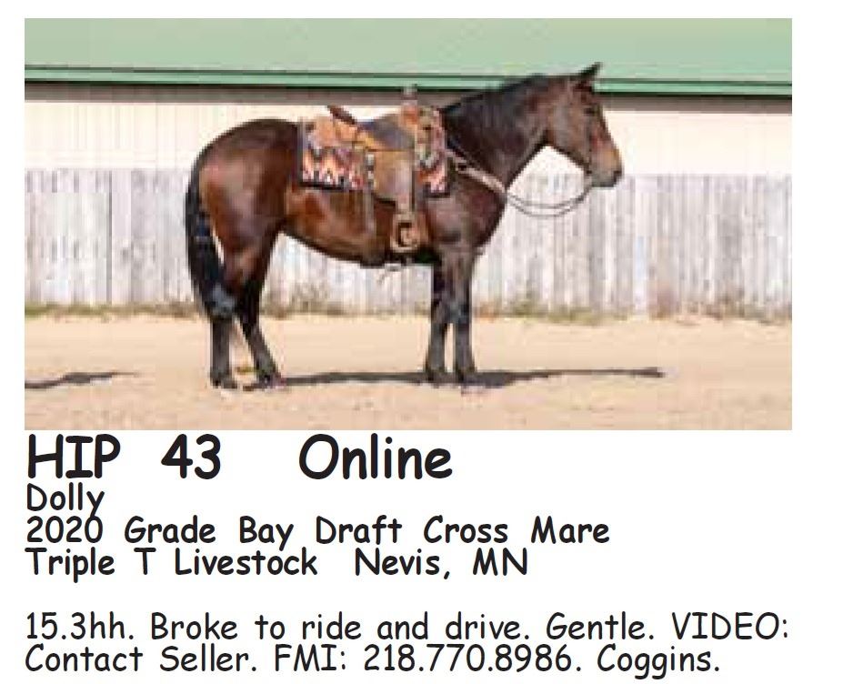 15.3hh. Broke to ride and drive. Gentle. VIDEO: Contact Seller. FMI: 218.770.8986. Coggins.