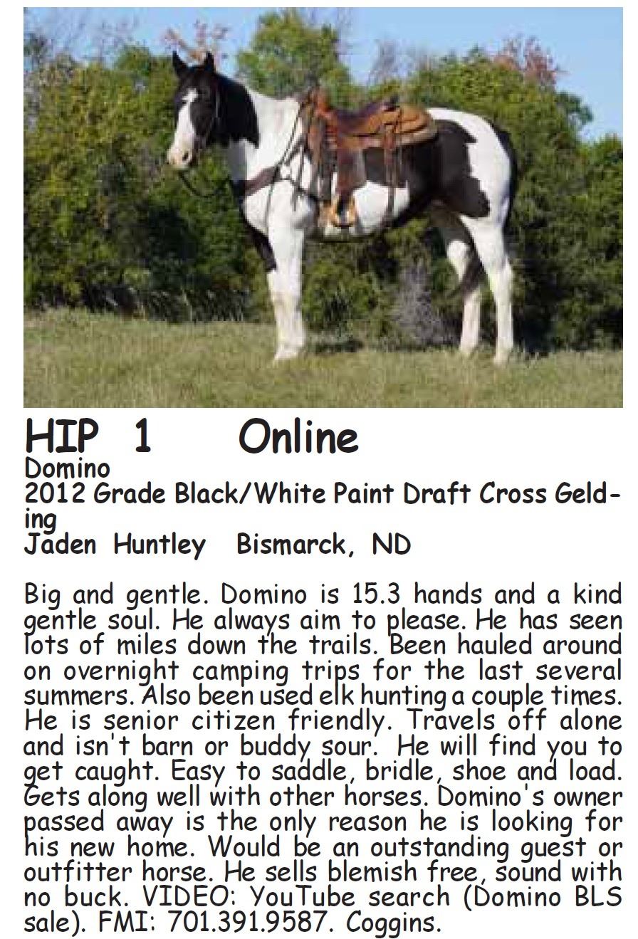 ALL OCTOBER 27-28 SALE HORSES WILL BE AUCTIONED LIVE AT BILLINGS LIVESTOCK – Internet bidding also available for Online/ ShowCase Internet Sale Session horses offered in this sale