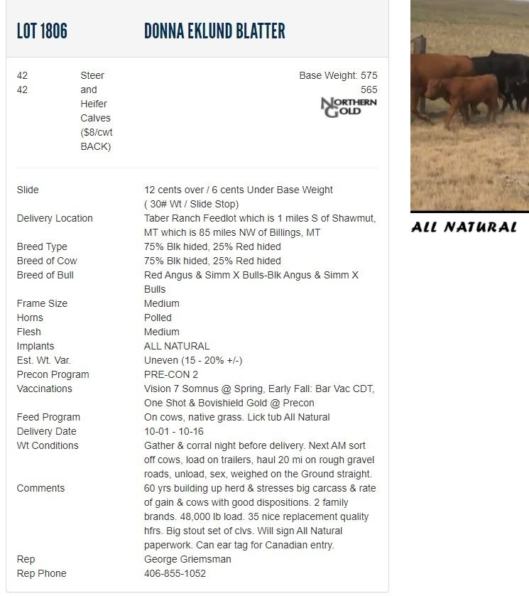 Comments 60 yrs building up herd & stresses big carcass & rate of gain & cows with good dispositions. 2 family brands. 48,000 lb load. 35 nice replacement quality hfrs. Big stout set of clvs. Will sign All Natural paperwork. Can ear tag for Canadian entry.