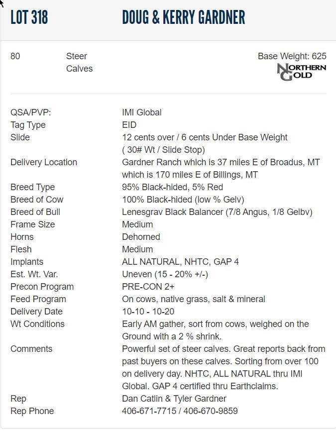 Delivery LocationGardner Ranch which is 37 miles E of Broadus, MT which is 170 miles E of Billings, MT