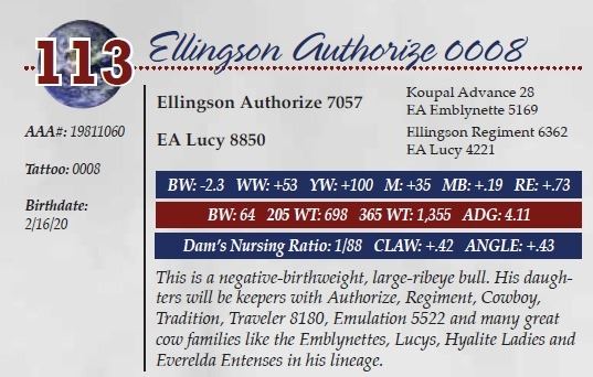 Sire: Ellingson Authorize 7057 - Dam: EA Lucy 8850