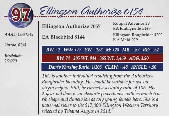 Sire: Ellingson Authorize 7057 - Dam: EA Blackbird 8144