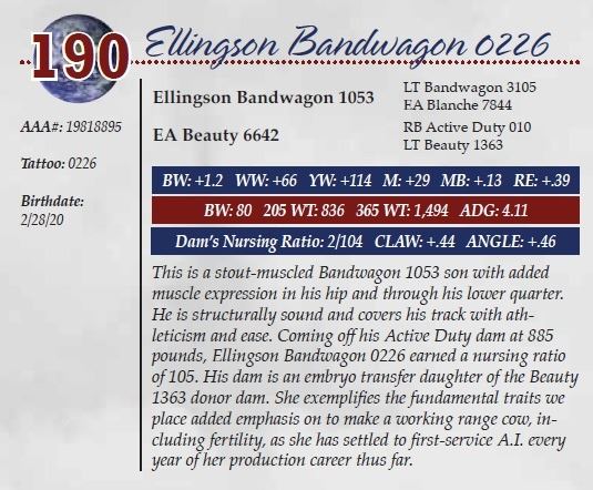 Sire: Ellingson Bandwagon 1053 - Dam: EA Beauty 6642