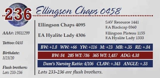 Sire: Ellingson Chaps 4095 - Dam: EA Hyalite Lady 4306