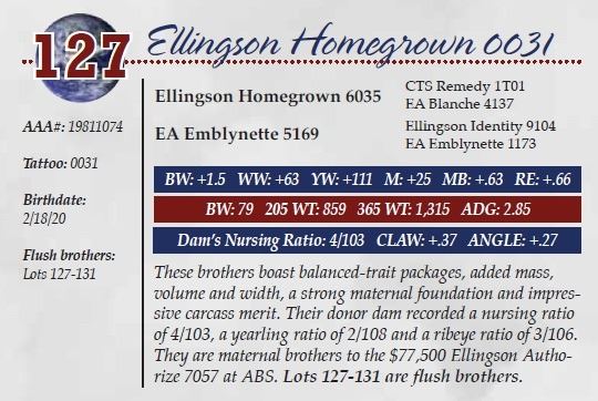 Sire: Ellingson Homegrown 6035 - Dam: EA Emblynette 5169