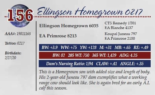 Sire: Ellingson Homegrown 6035 - Dam: EA Primrose 8213