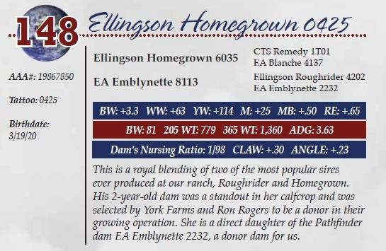 Sire: Ellingson Homegrown 6035 - Dam: EA Emblynette 8113