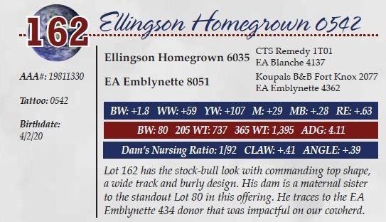 Sire: Ellingson Homegrown 6035 - Dam: EA Emblynette 8051