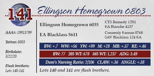 Sire: Ellingson Homegrown 6035 - Dam: EA Blacklass 5611