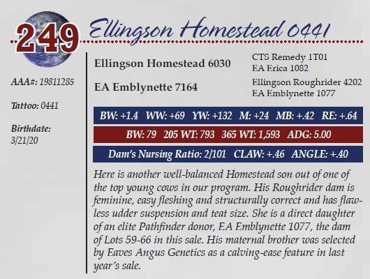 Sire: Ellingson Homestead 6030 - Dam: EA Emblynette 7164