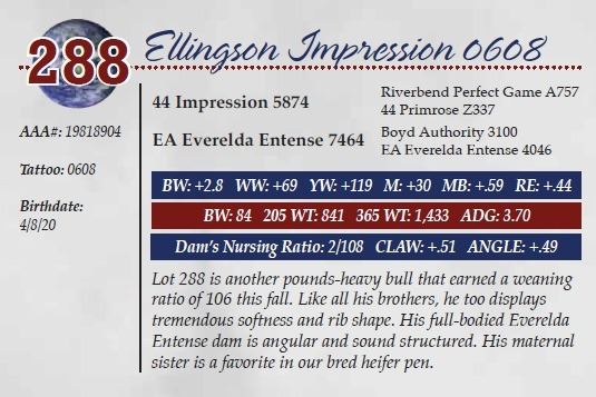 Sire: 44 Impression 5874 - Dam: EA Everelda Entense 7464