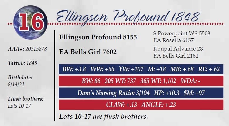 All persons who attend this sale do so at their own risk, legal or otherwise. Ellingson Angus assumes no liability for property loss or accident that may occur.