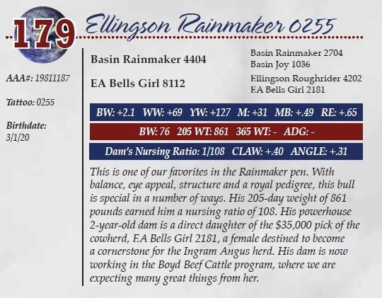 Sire: Basin Rainmaker 4404 - Dam: EA Bells Girl 8112