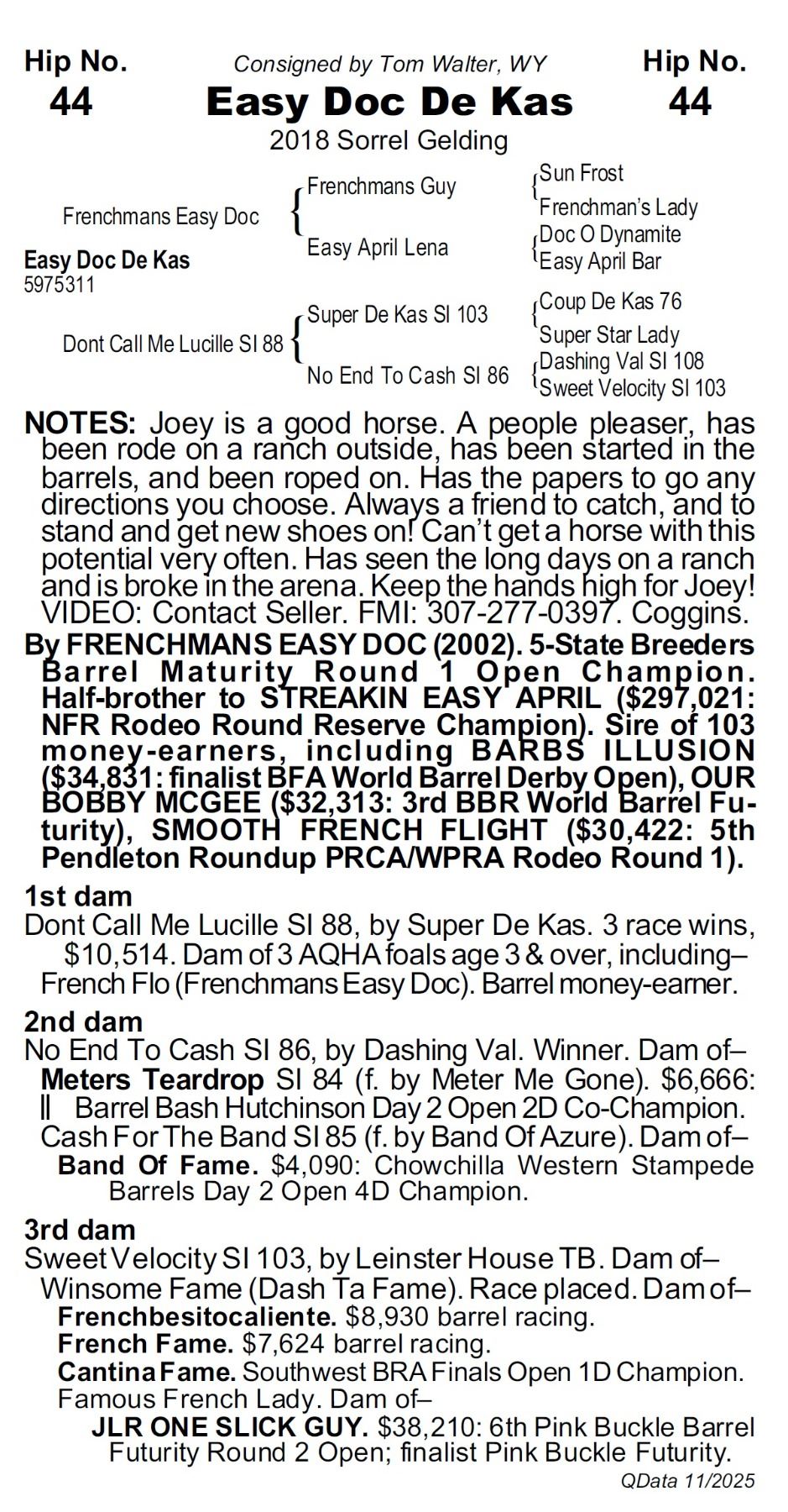horses after the sale. Consignors will assist with holding of animals pending transport and assist with transport arrangements where noted in footnotes on individual horses.