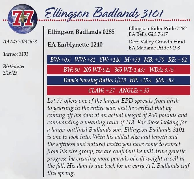 All persons who attend this sale do so at their own risk, legal or otherwise. Ellingson Angus assumes no liability for property loss or accident that may occur.