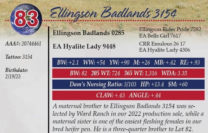 All persons who attend this sale do so at their own risk, legal or otherwise. Ellingson Angus assumes no liability for property loss or accident that may occur.