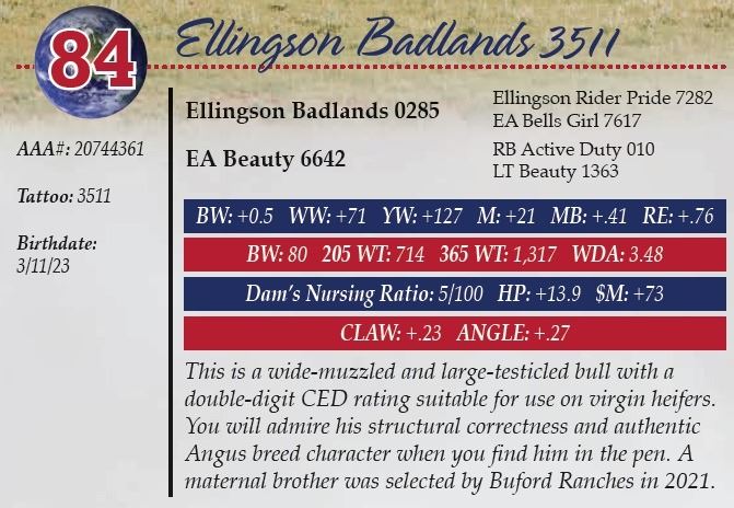 All persons who attend this sale do so at their own risk, legal or otherwise. Ellingson Angus assumes no liability for property loss or accident that may occur.