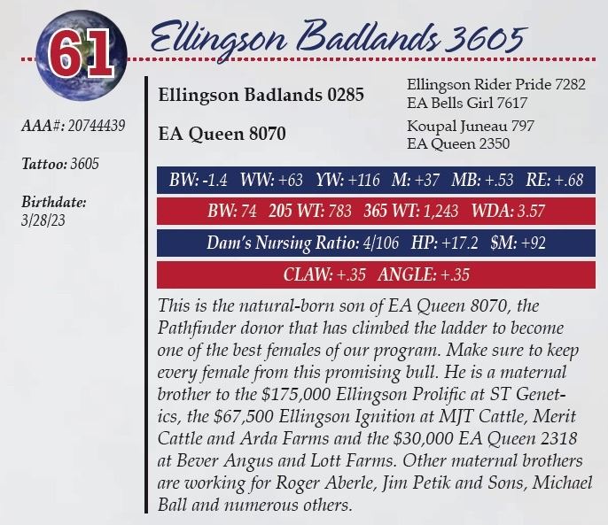 All persons who attend this sale do so at their own risk, legal or otherwise. Ellingson Angus assumes no liability for property loss or accident that may occur.