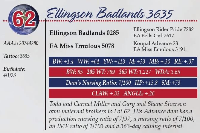 All persons who attend this sale do so at their own risk, legal or otherwise. Ellingson Angus assumes no liability for property loss or accident that may occur.