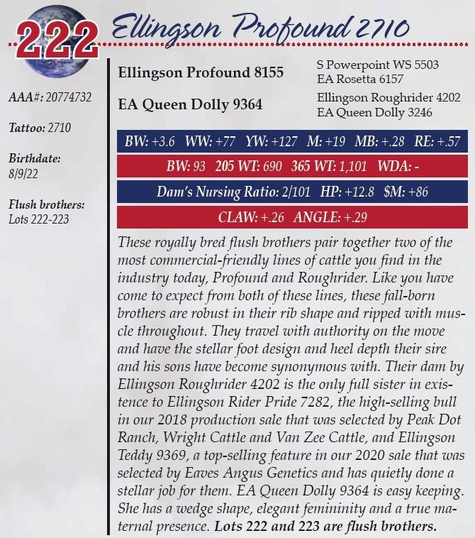 All persons who attend this sale do so at their own risk, legal or otherwise. Ellingson Angus assumes no liability for property loss or accident that may occur.