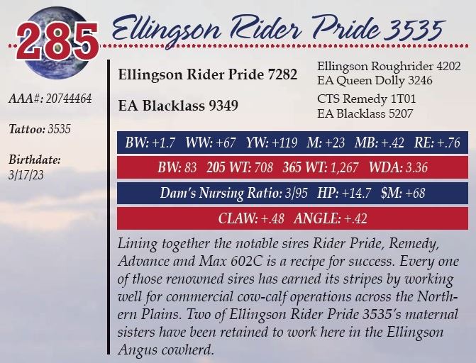 All persons who attend this sale do so at their own risk, legal or otherwise. Ellingson Angus assumes no liability for property loss or accident that may occur.