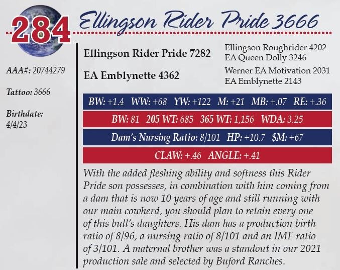 All persons who attend this sale do so at their own risk, legal or otherwise. Ellingson Angus assumes no liability for property loss or accident that may occur.