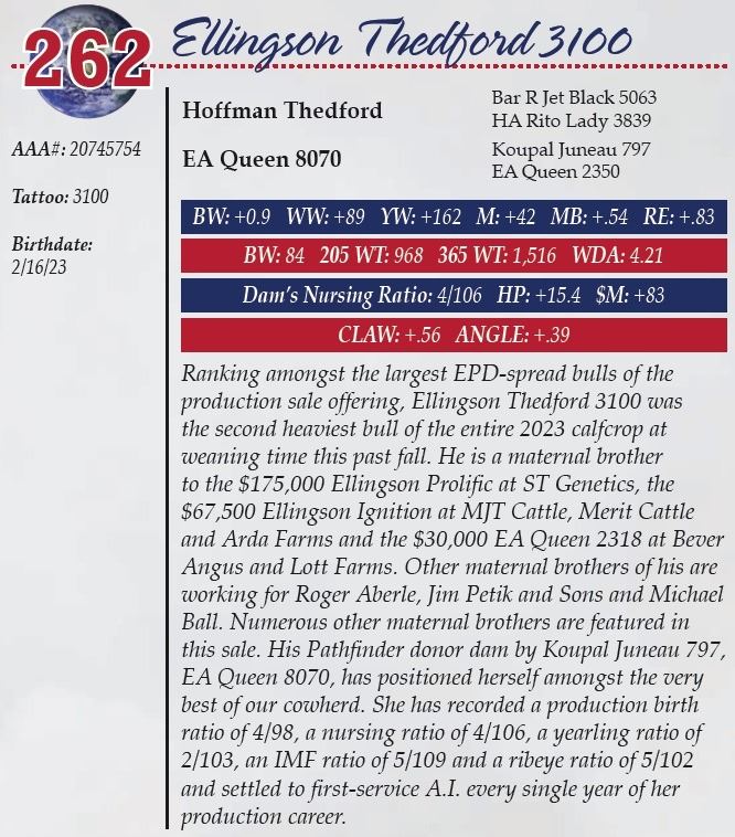 All persons who attend this sale do so at their own risk, legal or otherwise. Ellingson Angus assumes no liability for property loss or accident that may occur.