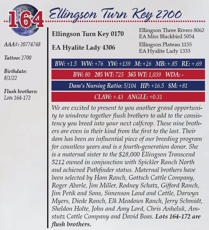 All persons who attend this sale do so at their own risk, legal or otherwise. Ellingson Angus assumes no liability for property loss or accident that may occur.